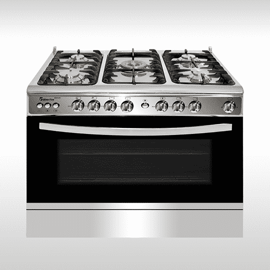 بوتاجاز لاجيرمانيا فري ستاند 90 × 60 سم 5 شعلة غاز لون استانلس × أسود مزود بغطاء زجاجي 9M10G4A1X4AWW