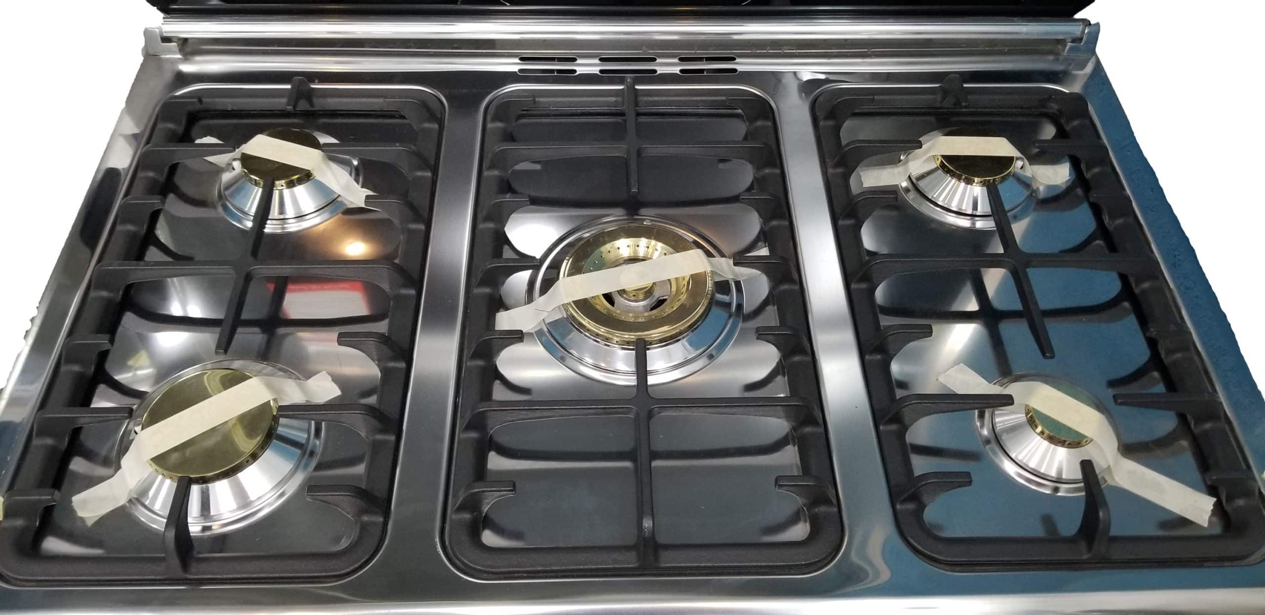 بوتاجاز لاجيرمانيا فري ستاند 90 × 60 سم 5 شعلة غاز لون استانلس × أسود مزود بغطاء زجاجي 9M10G4A1X4AWW
