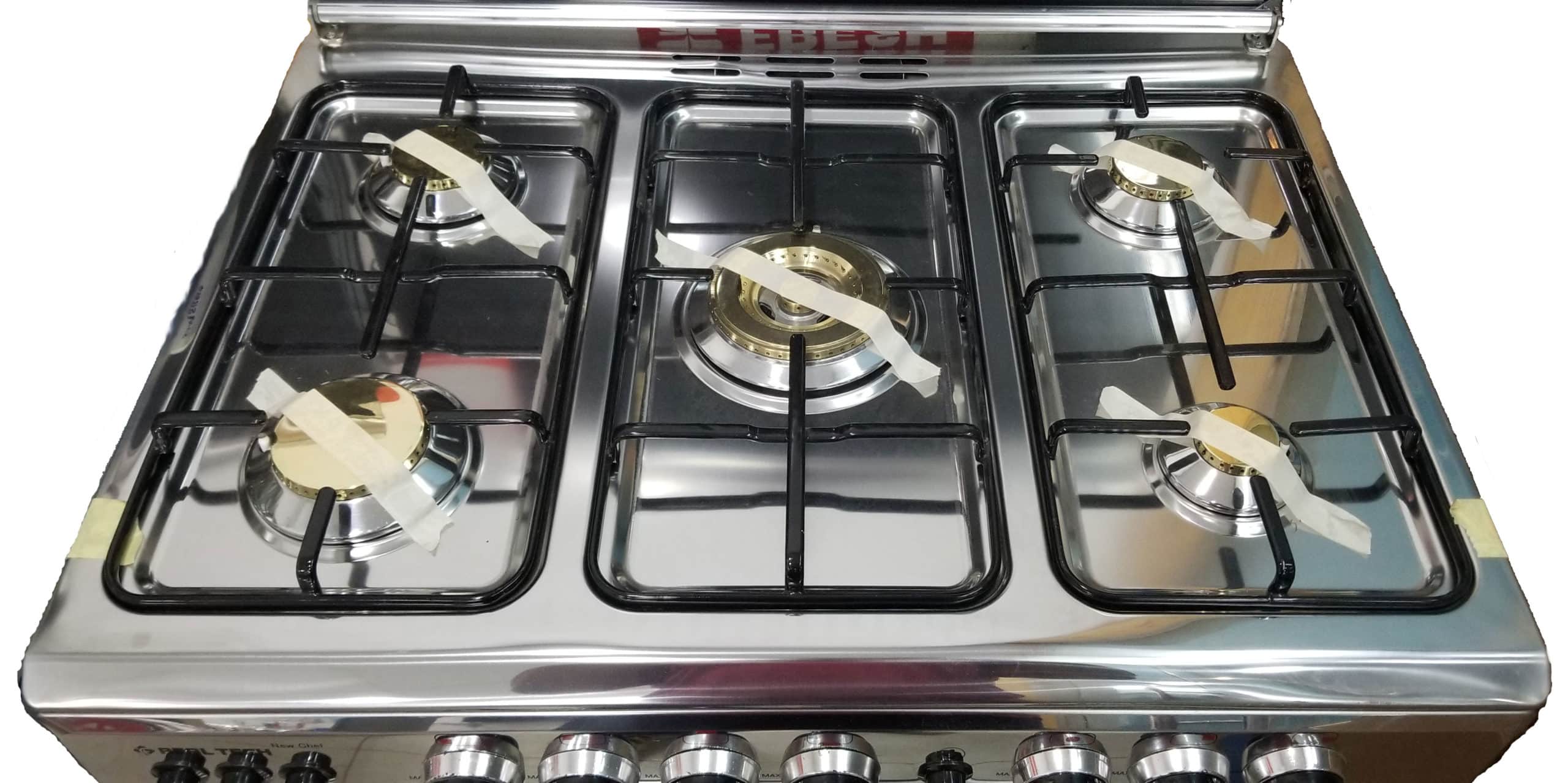 بوتاجاز لاجيرمانيا فري ستاند 90 × 60 سم 5 شعلة غاز لون استانلس × أسود مزود بغطاء زجاجي 9M10G4A1X4AWW