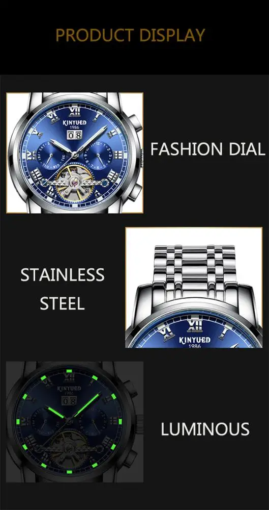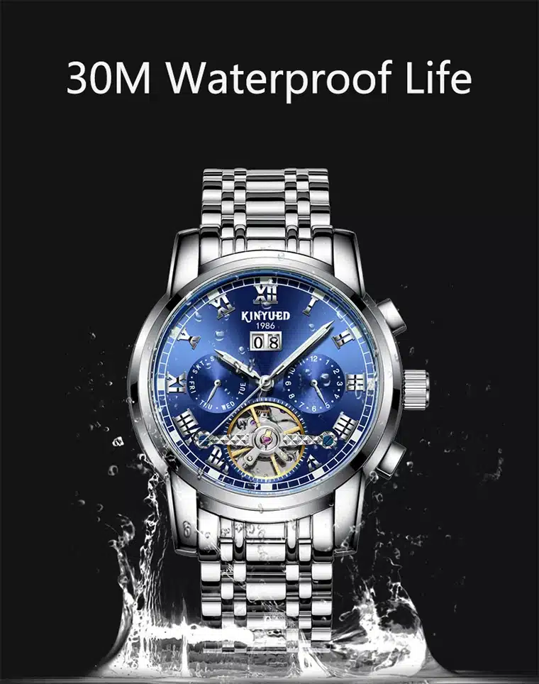 KINYUED Factory Brand Mechanical Watch Manufacturer Customized Custom LOGO Fashionable Men’s Stainless Steel Mechanical Watch
